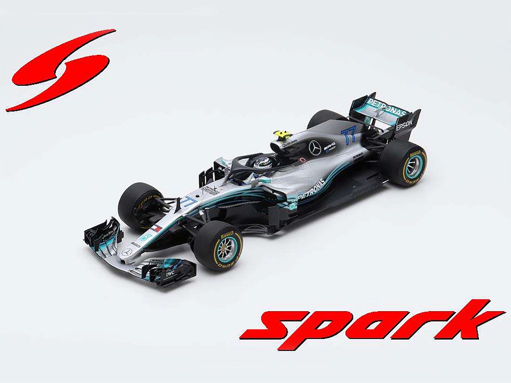 Miniatura Fórmula 1 Mercedes Benz AMG Petronas 2º Chinese 2018 Bottas 1:18 Spark