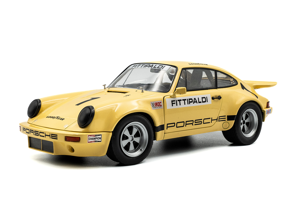 Miniatura Porsche 911 IROC RSR Emerson Fittipaldi 1974 1:18 Solido Amarelo