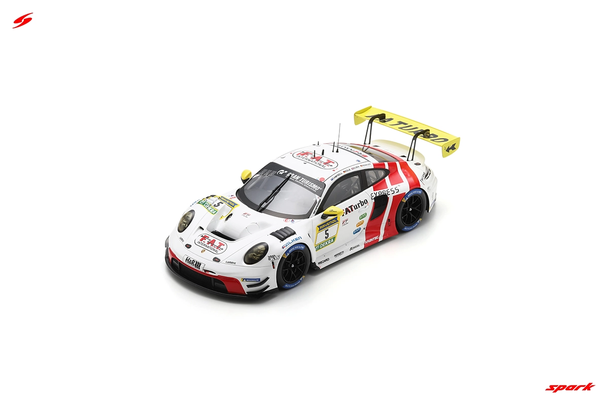 Miniatura Porsche 911 GT3 R (992) No.5 Herberth Motorsport 24H Nürburgring 2024 1:18 Spark